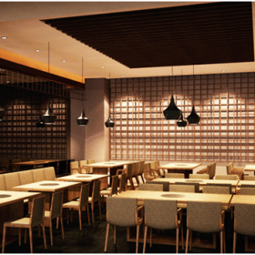 • Tấm ốp trên kệ ti vi: Gỗ Veneer sồi sơn để vân màu như phối cảnh